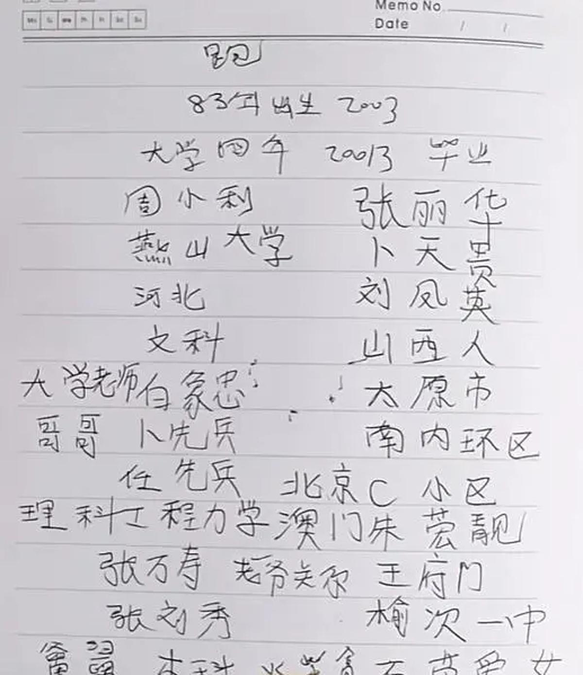 但是,志願者找到卜女士時,她不僅能準確寫出父母、家人的名字,就讀學校的信息,還在筆記本上寫的第一個字就是:跑。