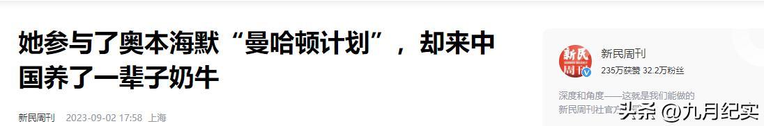 新民週刊2023-09-02 17:58報道:她參與了奧本海默“曼哈頓計劃”,卻來中國養了一輩子奶牛