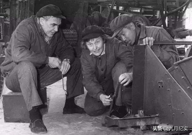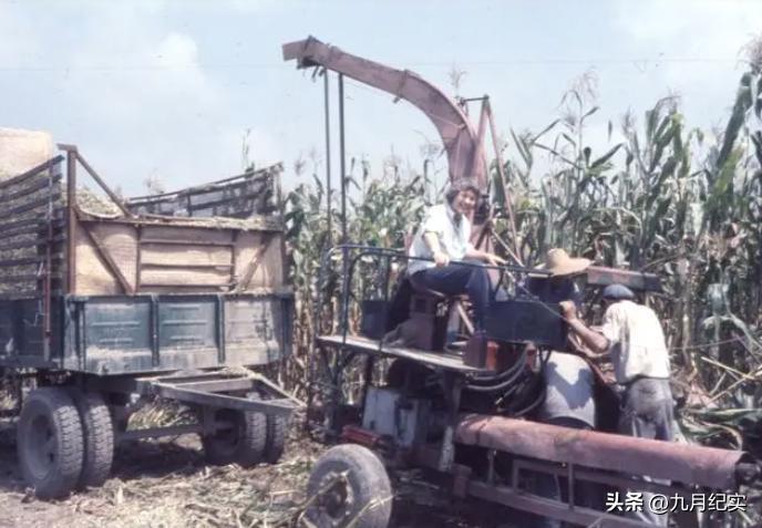 寒春、陽早在紅星公社的地裏排除牽引式青飼收割機的故障