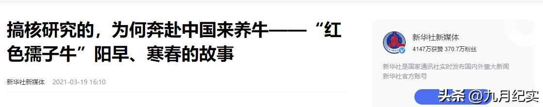 新華社新媒體2021-03-19 16:10報道:搞核研究的,爲何奔赴中國來養牛——“紅色孺子牛”陽早、寒春的故事