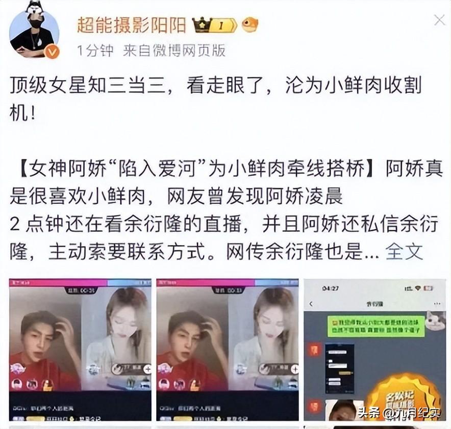 12月16日,有人在網上爆料稱,阿嬌的感情生活混亂,主動溝通男星餘衍隆,並在半夜2點出現餘衍隆的直播間進行打賞,並通過私信想要與餘衍隆交換聯繫方式。