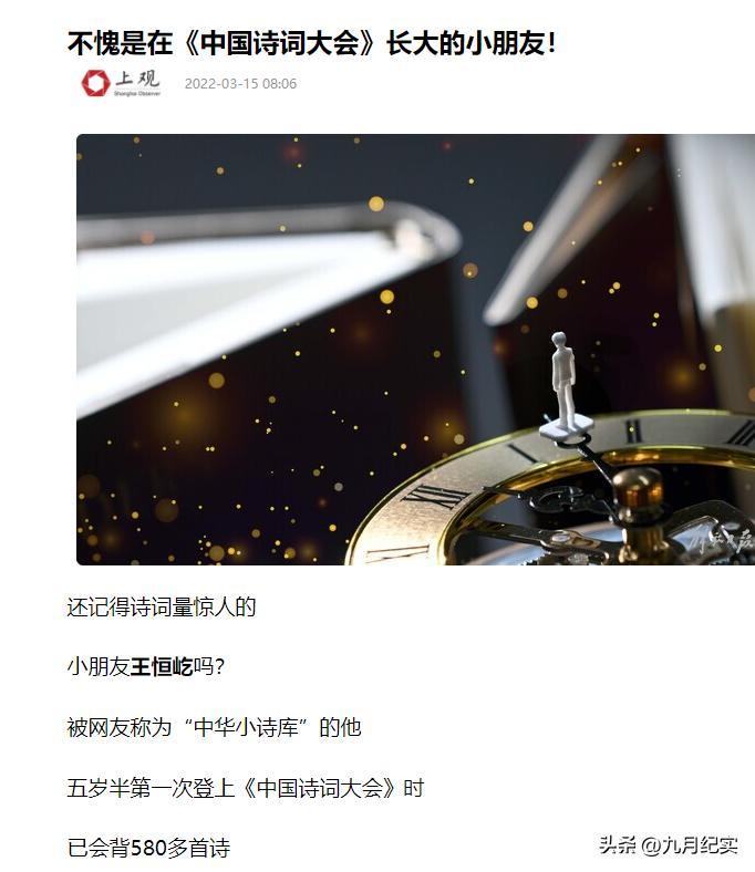上觀新聞2022-03-15 08:06報道:不愧是在《中國詩詞大會》長大的小朋友!