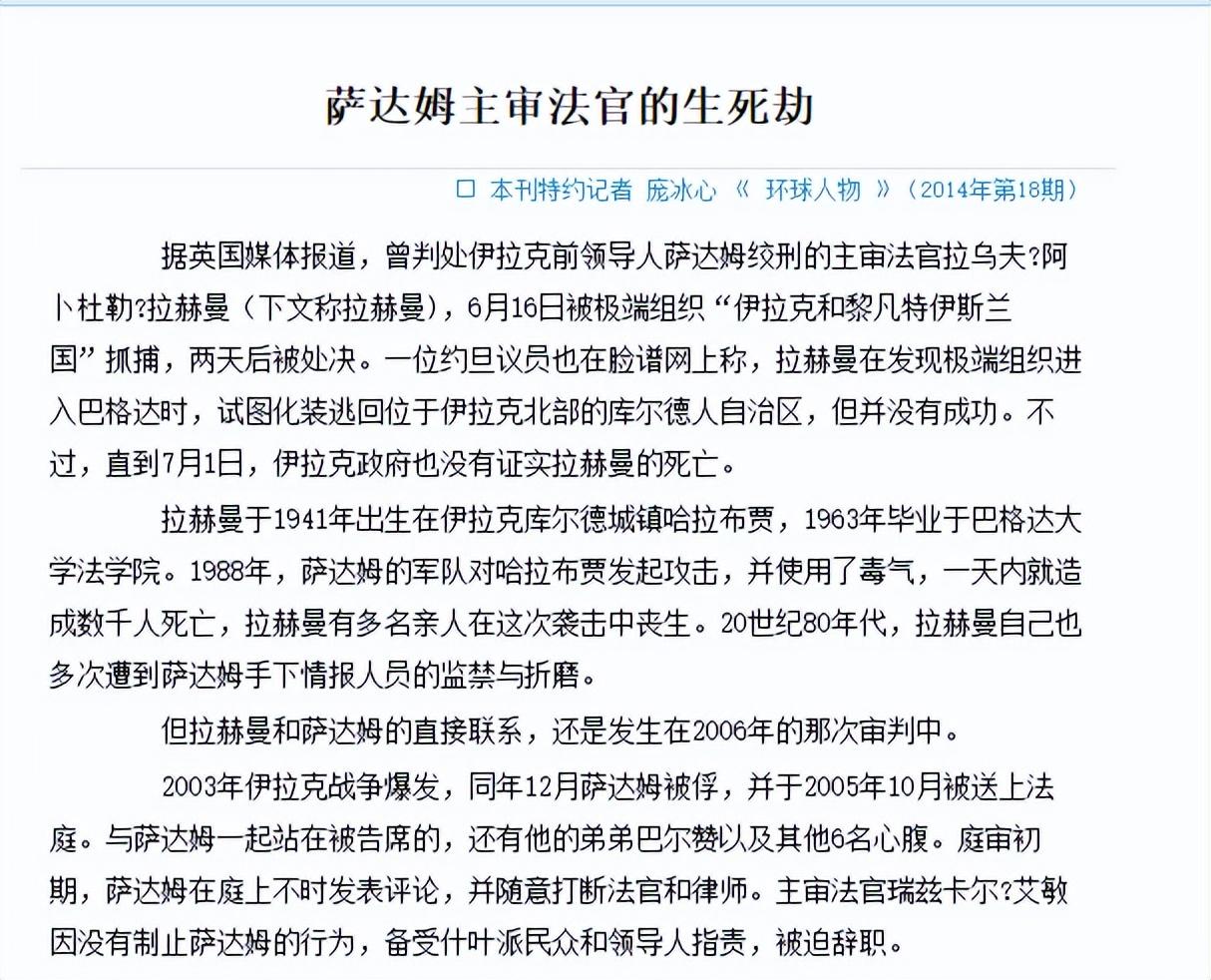 環球人物2014年第18期報道:薩達姆主審法官的生死劫