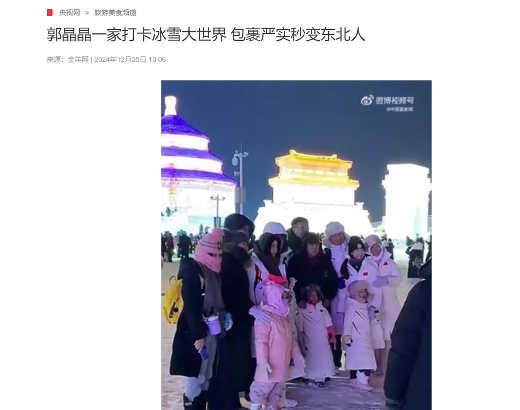 金羊網 | 2024年12月25日 10:06報道:郭晶晶一家打卡冰雪大世界 包裹嚴實秒變東北人