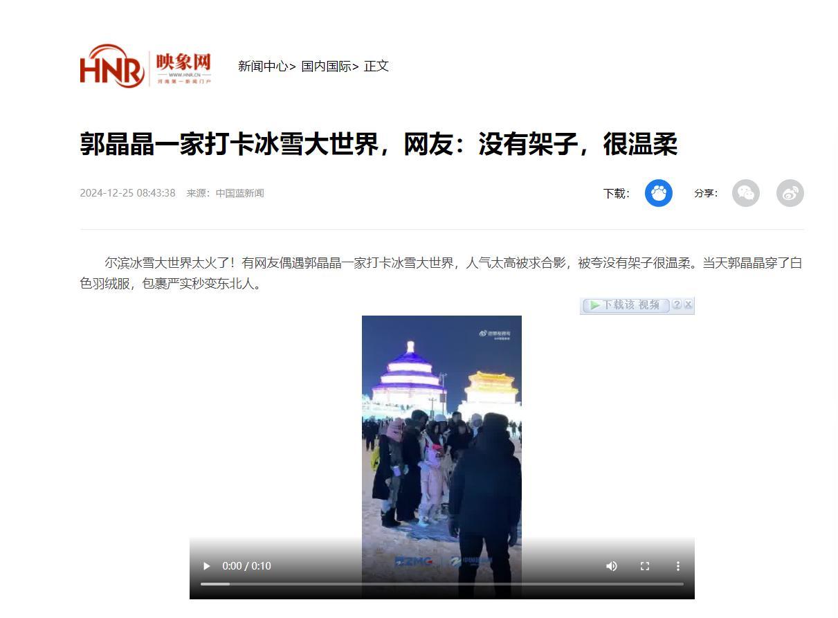映象網2024-12-25 08:43:38報道:郭晶晶一家打卡冰雪大世界,網友:沒有架子,很溫柔