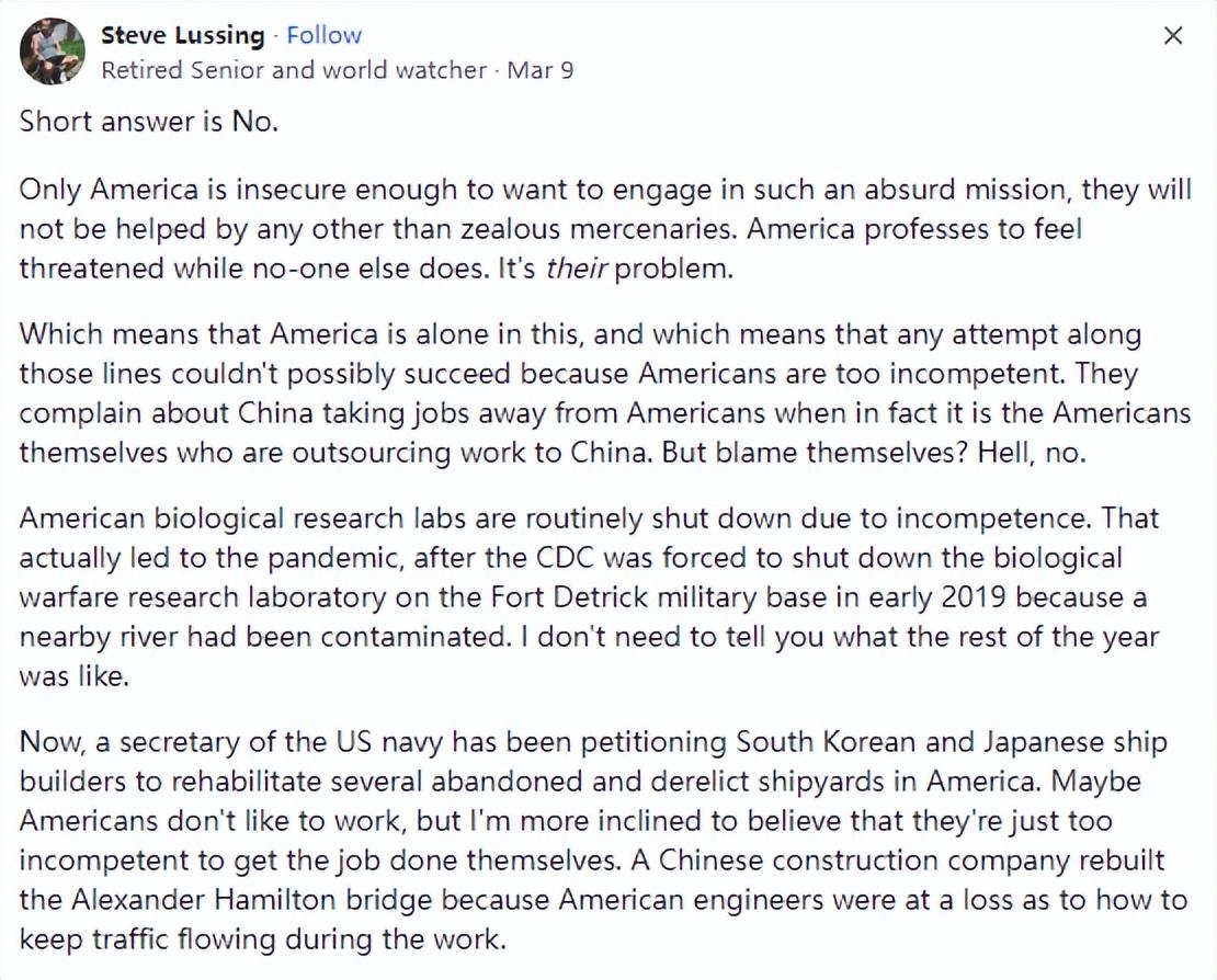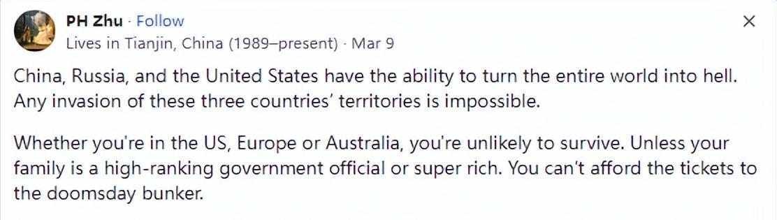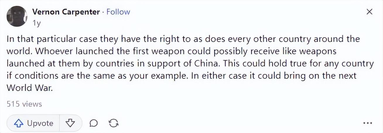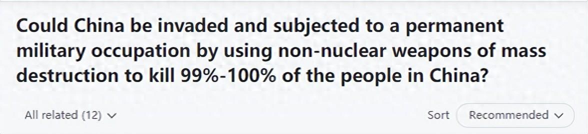 近段時間就有一位美國網友,他在國外最大的論壇Quora上,提出這樣一個問題,若是美國選擇使用大規模的殺傷性武器,能否消滅中國人併入侵中國。