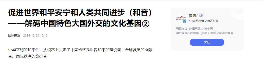 中國是一個有責任感的大國,也是一個熱愛和平的大國,積極尋求與各個國家的合作,想要推進人類命運共同體的建設。
