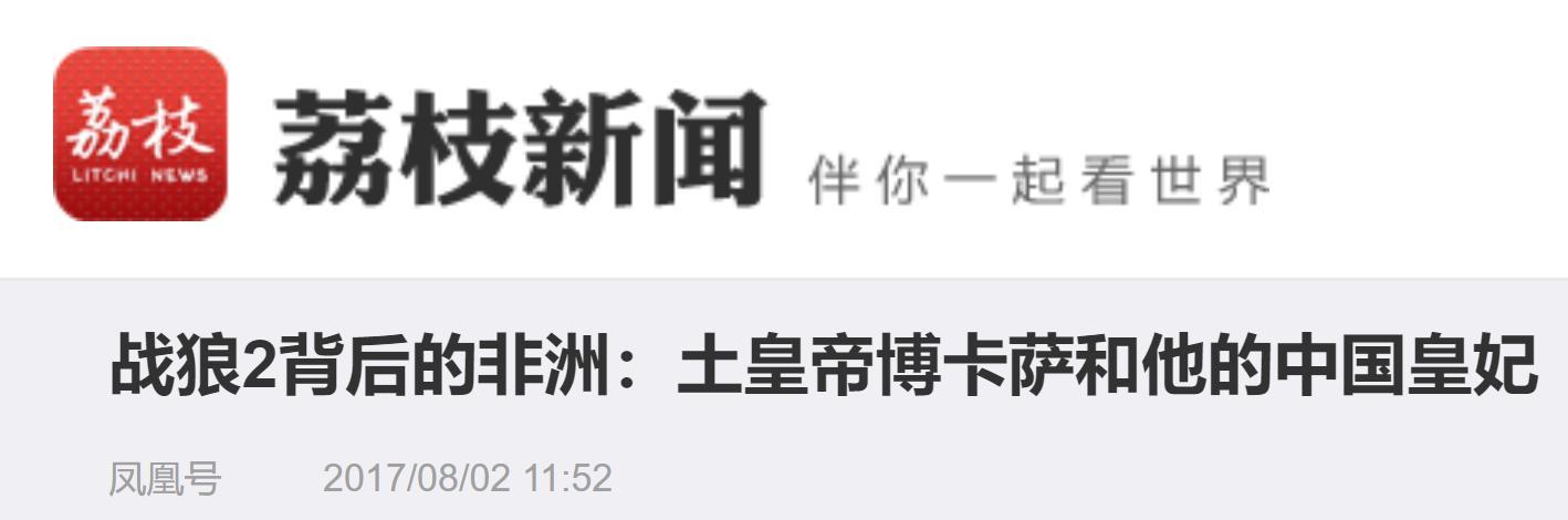 荔枝新聞 2017/08/02 11:52報道:戰狼2背後的非洲:土皇帝博卡薩和他的中國皇妃