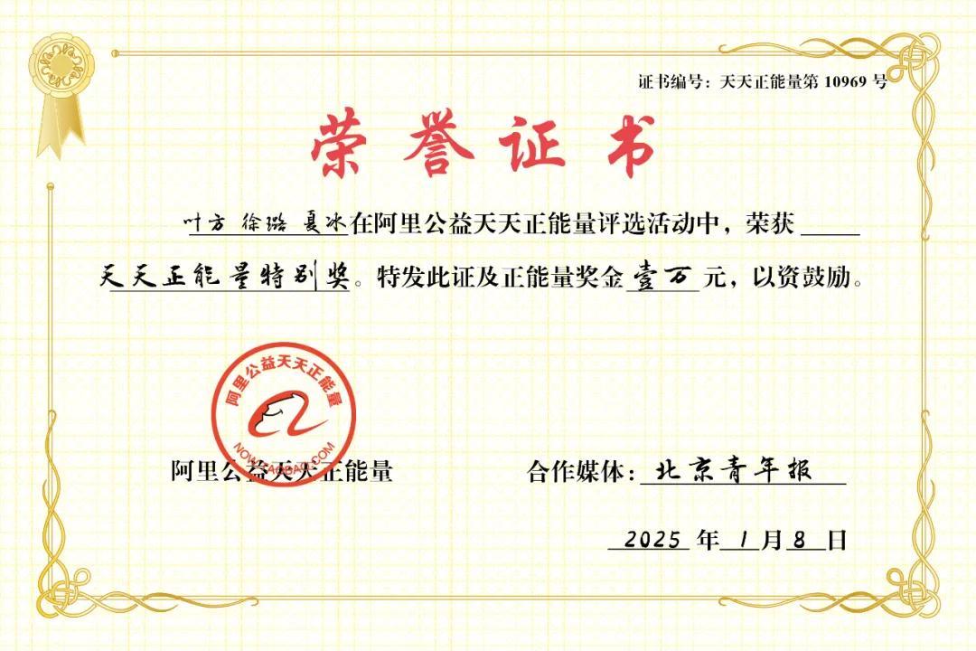 阿里公益天天正能量聯合北京青年報,爲葉方、徐璐及夏冰頒發特別獎,致敬地震中的凡人微光,致敬永不缺席的退伍老兵!