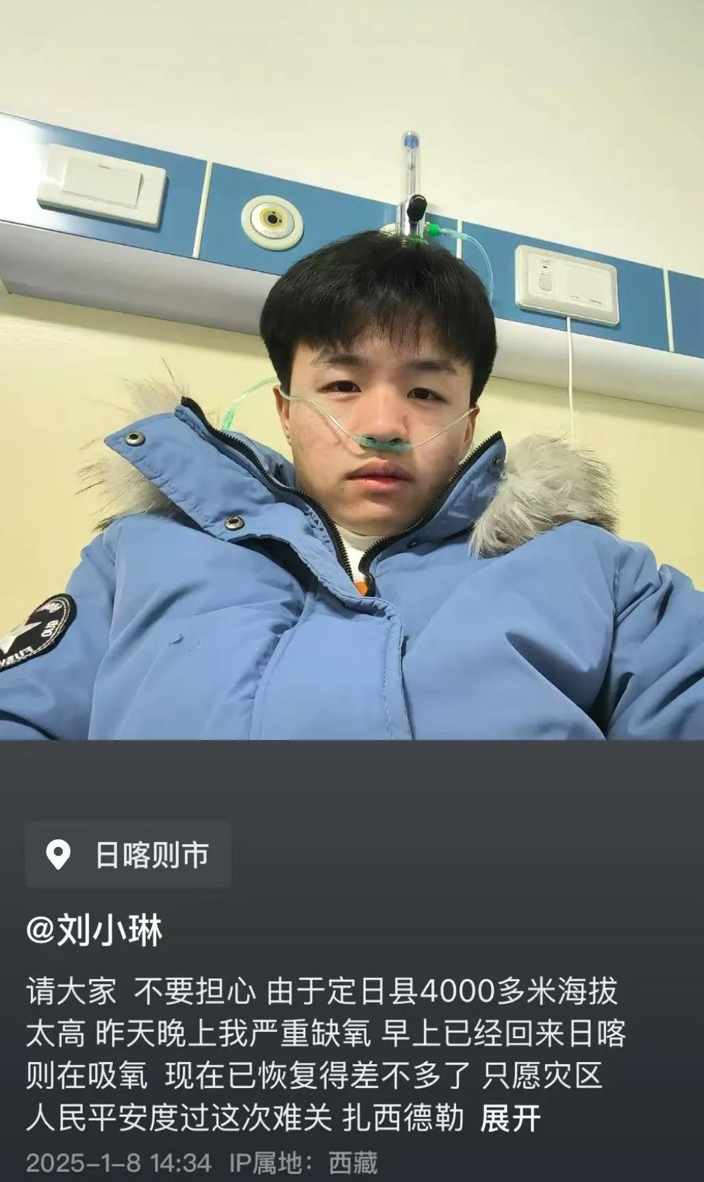 到了晚上,由於海拔太高,他們出現胸悶頭痛的情況,於是第二天早上返回日喀則吸氧。目前,身體好轉的他們還在聯繫相關人員,準備再次返回定日縣繼續參與救援。