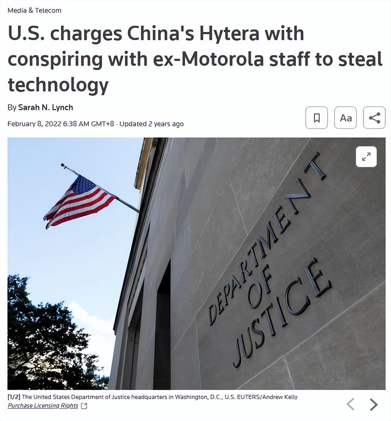 美國宣稱,海能達已經想聯邦法院承認,它的確存在與摩托羅拉前員工合謀竊取商業機密的行爲,使得摩托羅拉的數字移動無線技術遭到泄露。