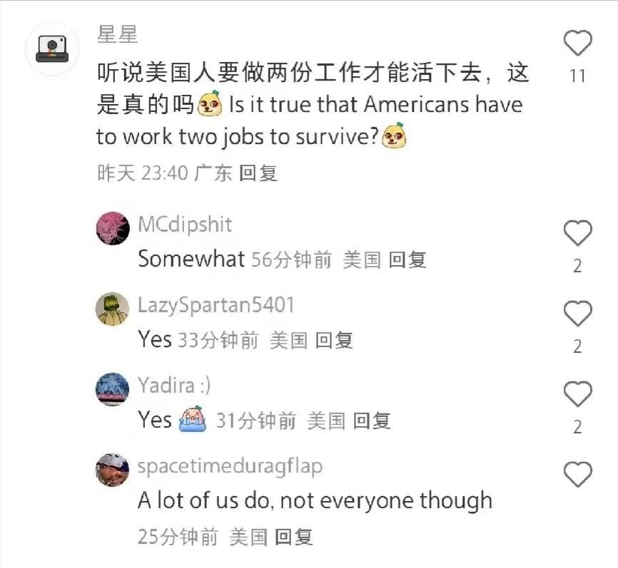 而且美國民衆的生活也並不輕鬆,他們中的一些人一天甚至需要幹兩份工作,才能保證自己每天的正常需求。