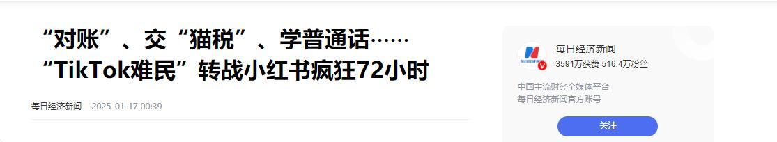 每日經濟新聞2025-01-17 00:39報道:“對賬”、交“貓稅”、學普通話⋯⋯“TikTok難民”轉戰小紅書瘋狂72小時