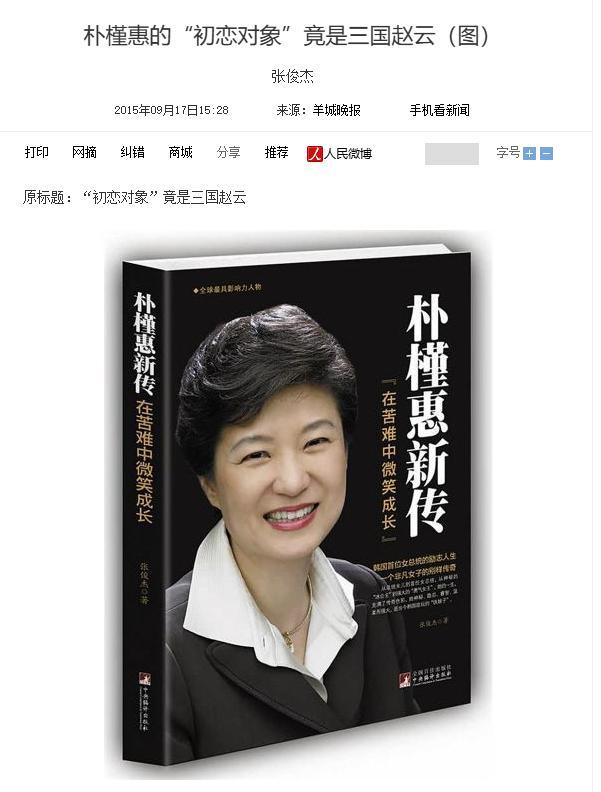 羊城晚報2015年09月17日發佈:朴槿惠的“初戀對象”竟是三國趙雲