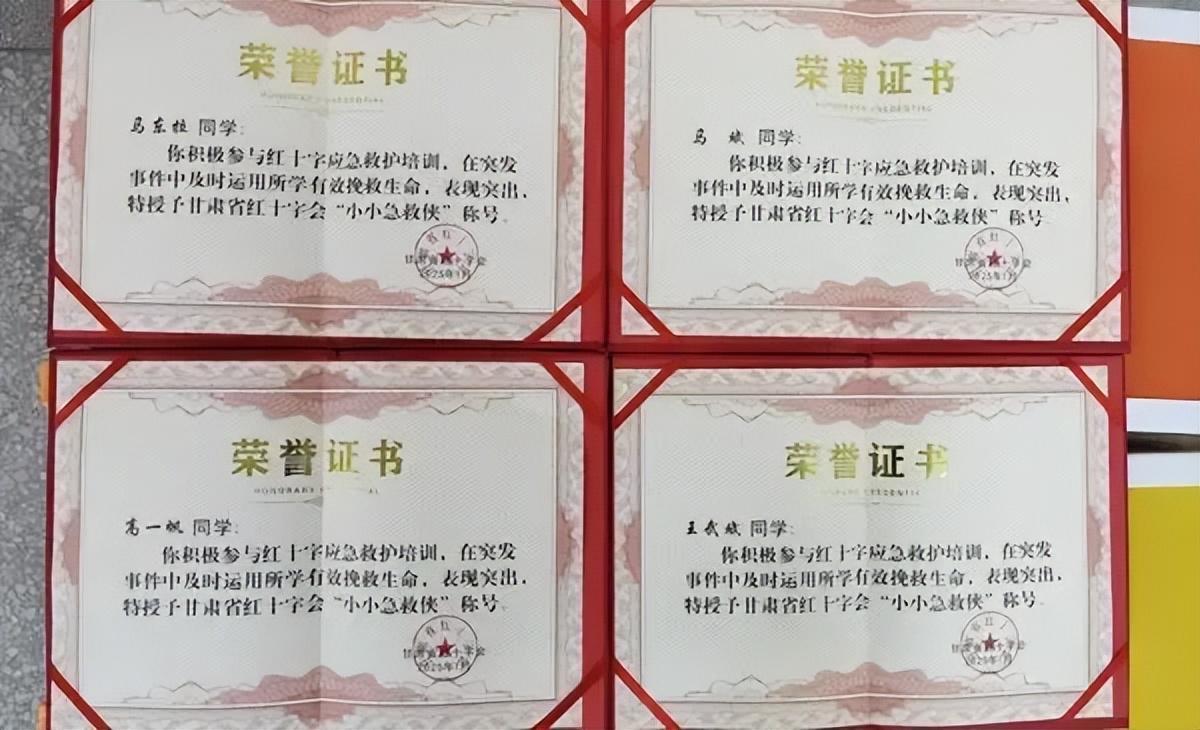 甘肅省紅十字會頒發給他們的“小小急救俠”榮譽證書。受訪者供圖