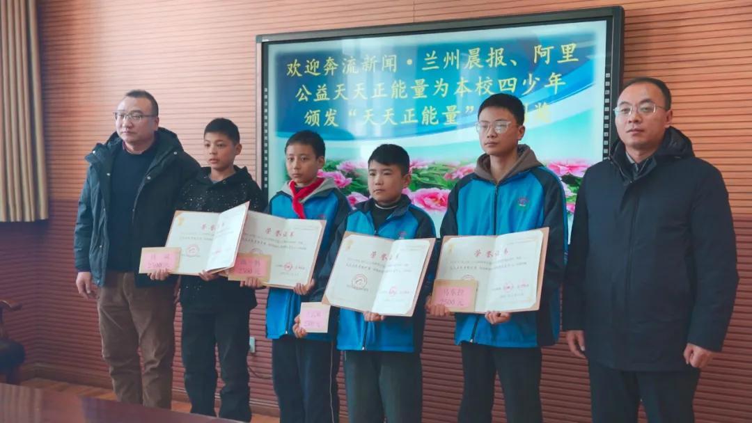 奔流新聞·蘭州晨報採訪了四位少年,還給他們帶來了阿里公益天天正能量10000元特別獎金及證書。