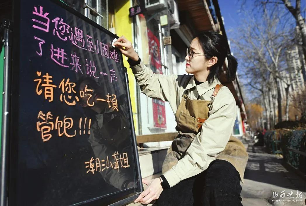 “當您遇到困難了,進來說一聲,請您喫一頓,管飽!”在店門前顯眼的位置,有這樣一句話。溫暖的語言,讓寒冷的冬天暖意融融。