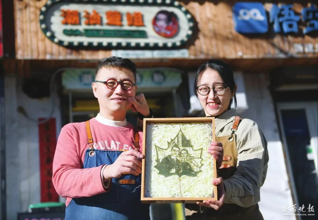 夫妻倆展示收到的樹葉畫