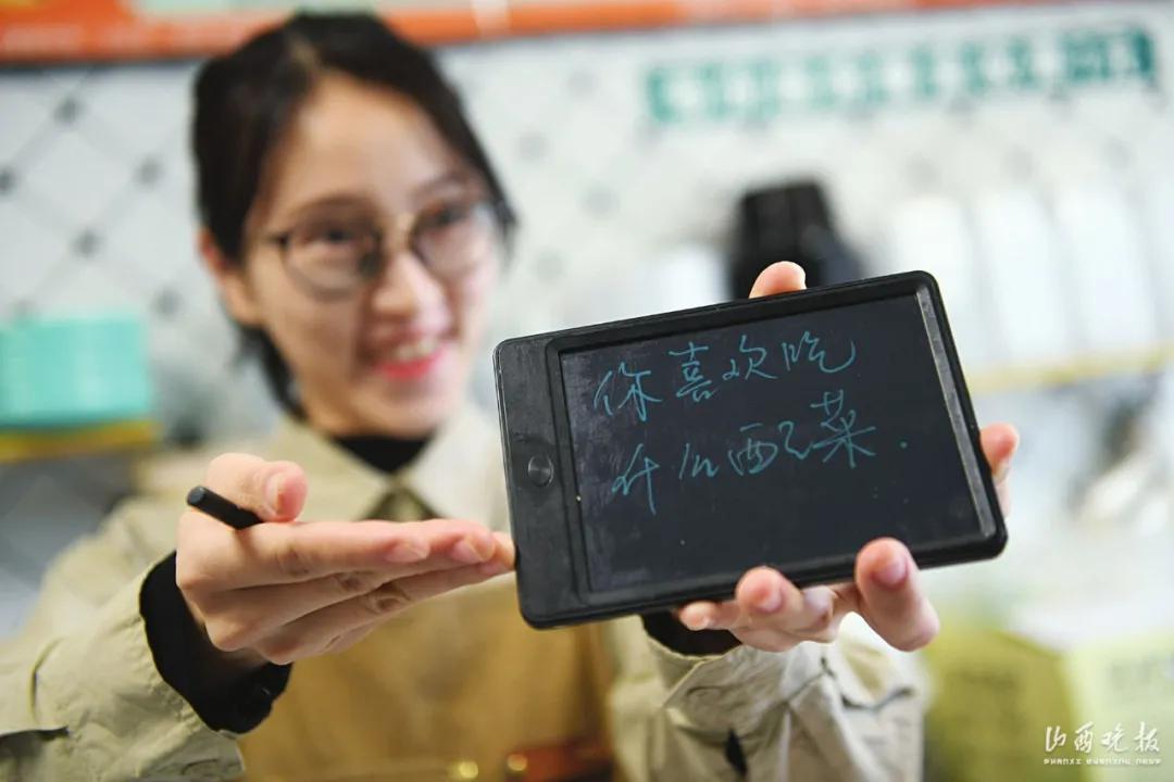 這塊電子寫字板,成了聾姐和顧客交流的工具