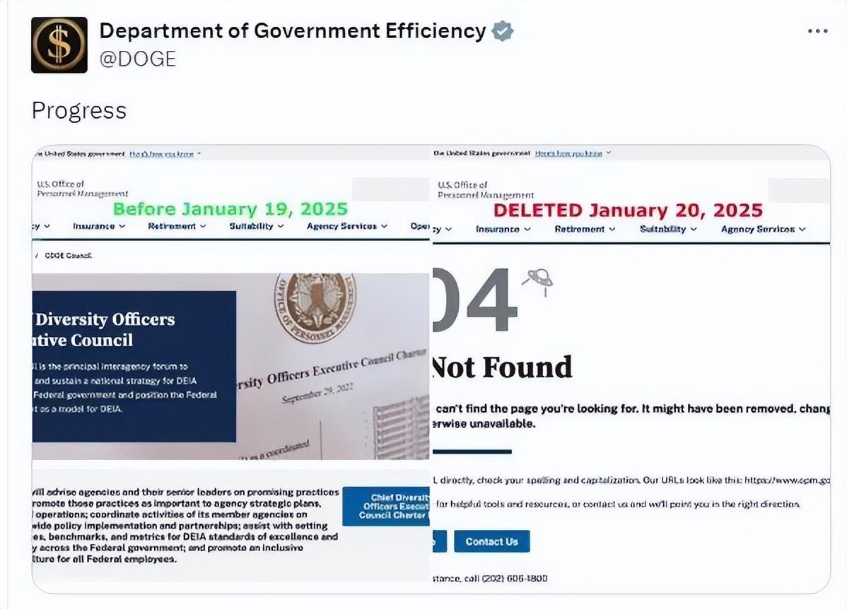 當效率部正式運作時,它做的第一件事,就是幫馬斯克“報仇”,讓首席多元化官員執行委員會的網站停止運行,並表示這個網站佔用了太多聯邦的財政支出。