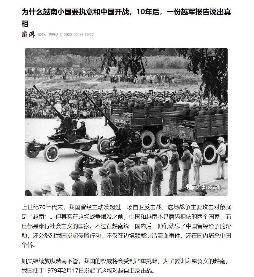 澎湃新聞2022-05-23 10:57報道:爲什麼越南小國要執意和中國開戰,10年後,一份越軍報告說出真相