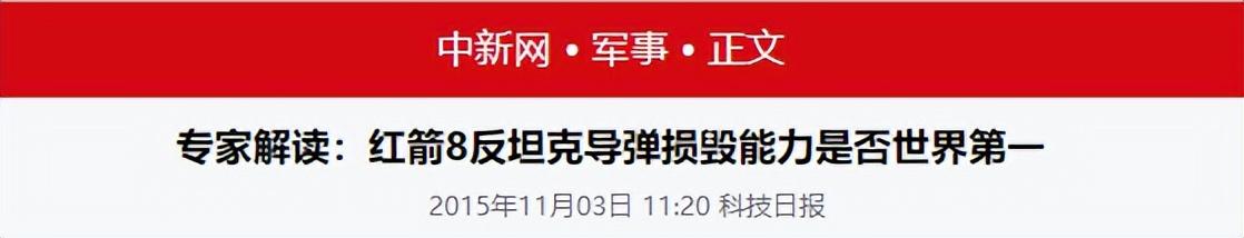 中國新聞網2015年11月03日 11:20報道:專家解讀:紅箭8反坦克導彈損毀能力是否世界第一