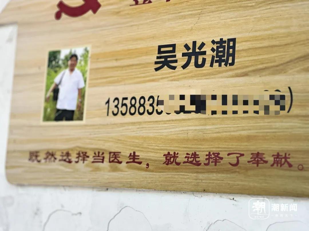 梅塘村衛生室的診室門口,掛着吳光潮的介紹牌,上面有他說過的一句話——既然選擇當醫生,就選擇了奉獻。
