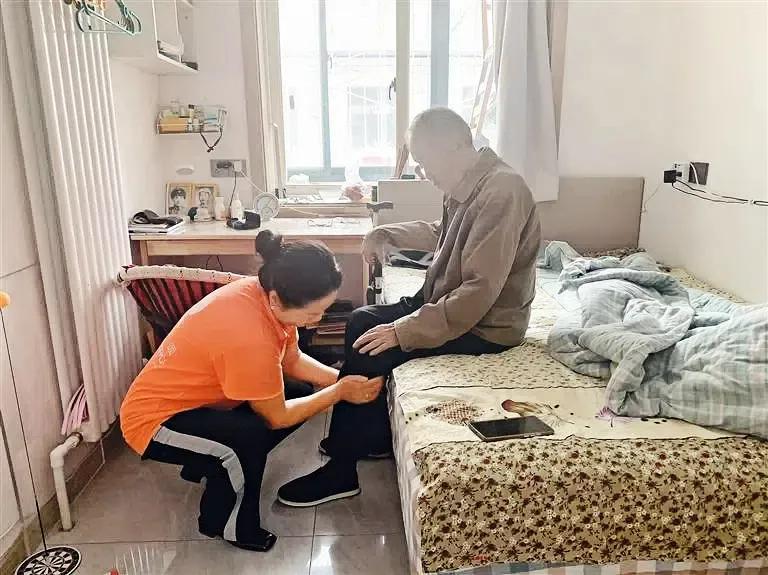 退役軍人祖庭信因腿負傷,每逢陰雨天疼痛難忍,徐千惠定期爲他按摩減緩疼痛;