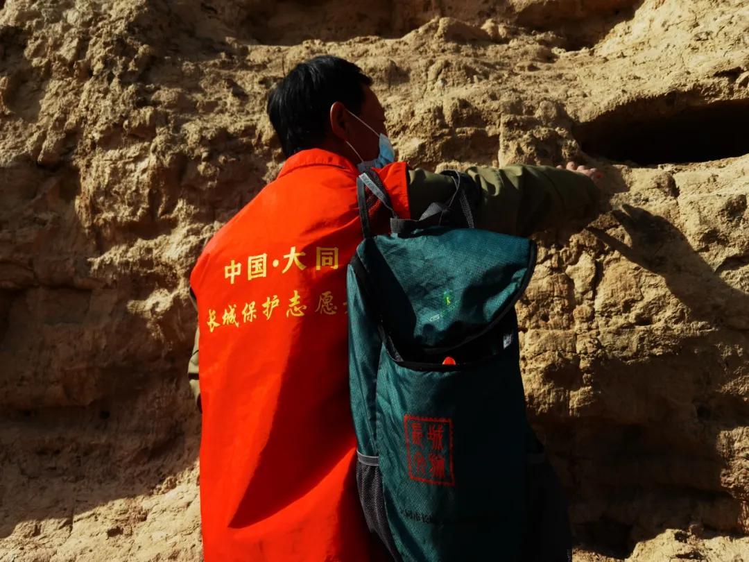 他帶着紅袖標走遍長城每一道土梁,像守護老友般呵護着六百年的風雨夯土。