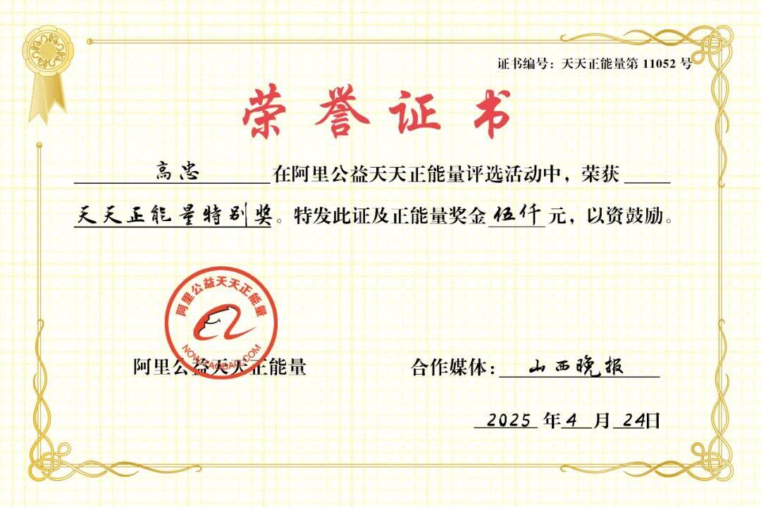 阿里公益天天正能量聯合山西晚報用一份正能量特別獎,致敬長城“土專家”高忠