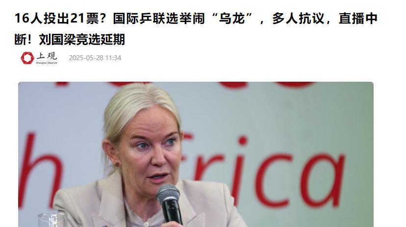 信息來源:上觀新聞 2025年5月28日 《16人投出21票?國際乒聯選舉鬧“烏龍”,多人抗議,直播中斷!劉國樑競選延期》