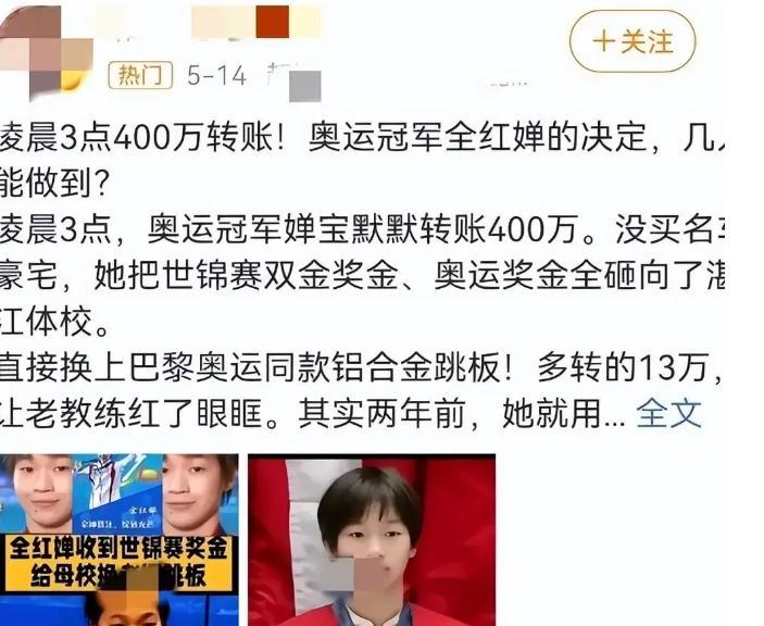 就在這個月中旬,互聯網上突然出現了大量的文案,都是有關於全紅嬋爲母校捐款300萬的消息。