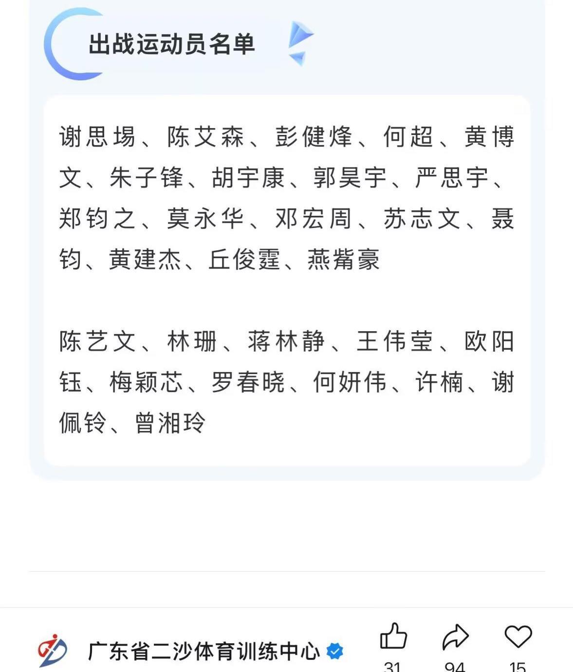 就在6天前,官方就公佈了廣東隊參與此次武漢冠軍賽的名單,但出乎大家預料的是,在這個名單上,我們並沒有看到全紅嬋的姓名。