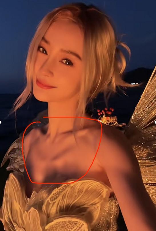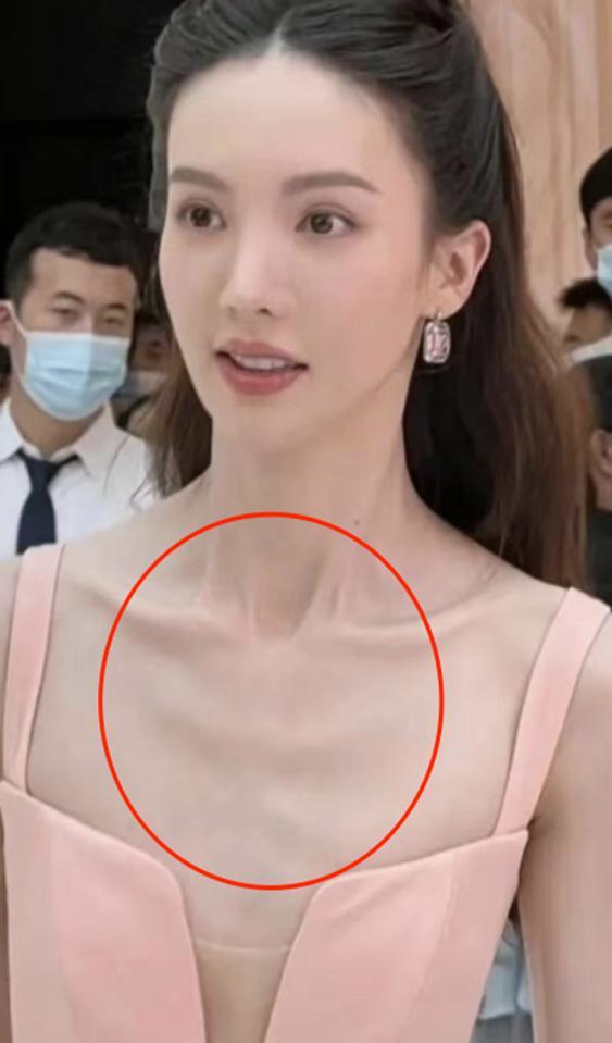 但她活動現場的生圖,已經連胸前的骨頭能看得一清二楚。