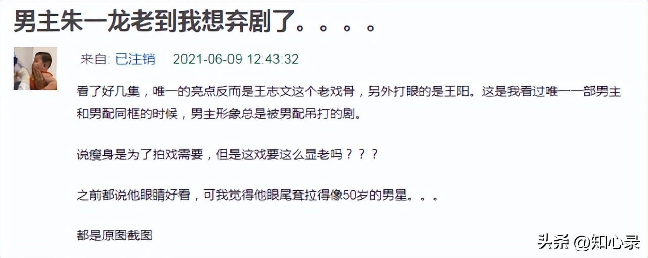 甚至有觀衆表示,因爲朱一龍看起來像五十多歲的樣子,想要棄劇。