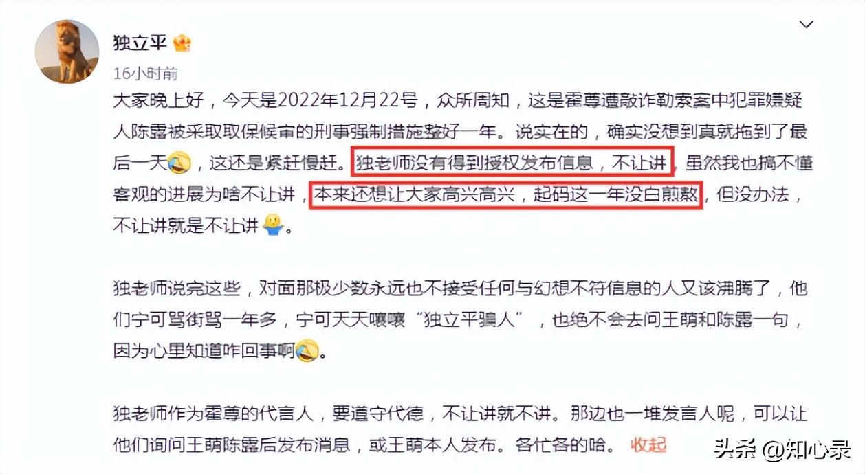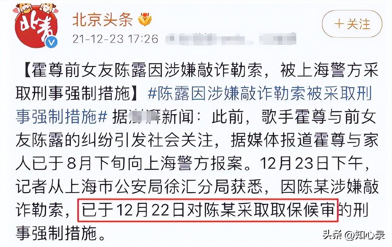 前兩天有消息傳出,陳露取保候審期滿,已經出來了。
