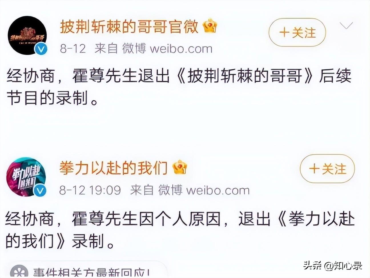 緊接着,和霍尊有合作的綜藝節目全都官宣停止合作。