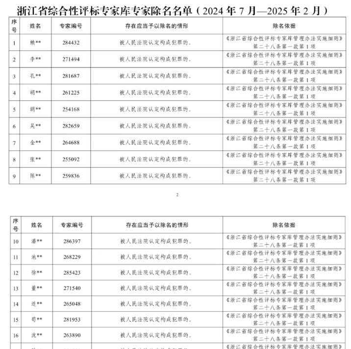 並且根據公示的信息,這並不是浙江第一次對專家進行除名,早在2023年的時候,就除名了240人,2024年上半年也除名了26人。