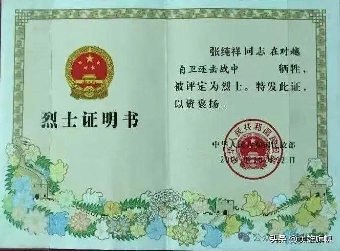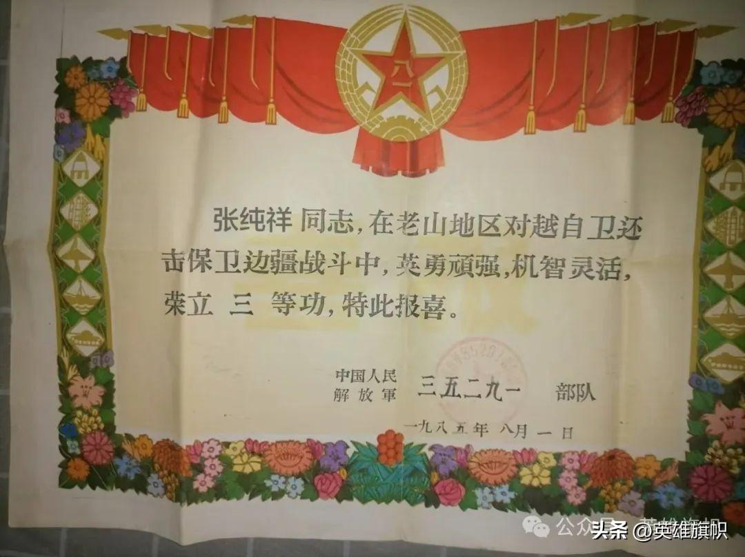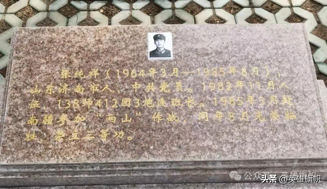 張純祥,412團3營炮兵連3排9班班長,山東省濟南市天橋區人,1964年12月出生。1983年1月入伍,1985年2月入黨,1985年3月隨部隊參加雲南省老山地區對越防禦作戰。1985年8月11日上午10點10分左右,被炮炸起的石頭砸傷頭部,光榮犧牲,年僅21歲,根據他的戰場表現,團黨委爲他追記三等功,骨灰安葬在濟南英雄山烈士陵園。
