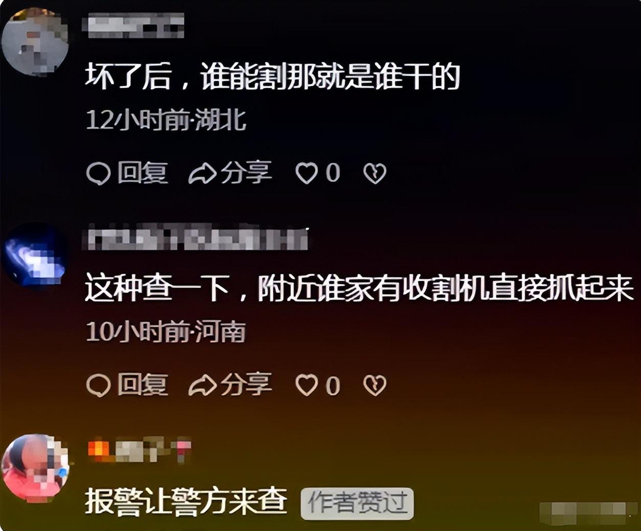 她先是拍了個視頻發佈到網上,原意是爲了譴責故意使壞,破壞夏收的人,但是網友們紛紛建議她報警:這種人不給個教訓的話,很有可能會二次作案。