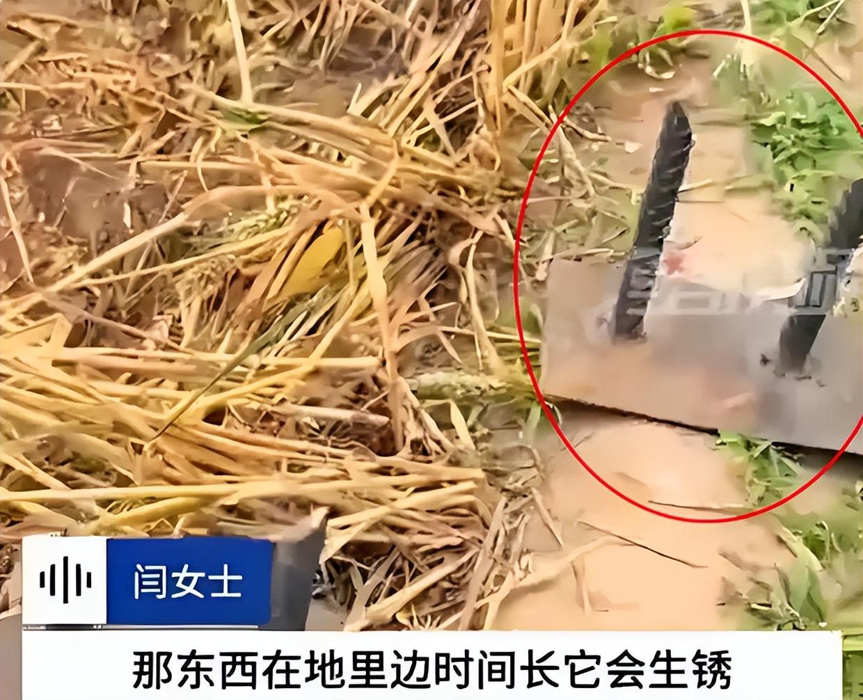 並且,出現這種鋼筋的農田不止一處,三十多畝的農田裏,足足有6處發現了這樣插在田地中的鋼筋。