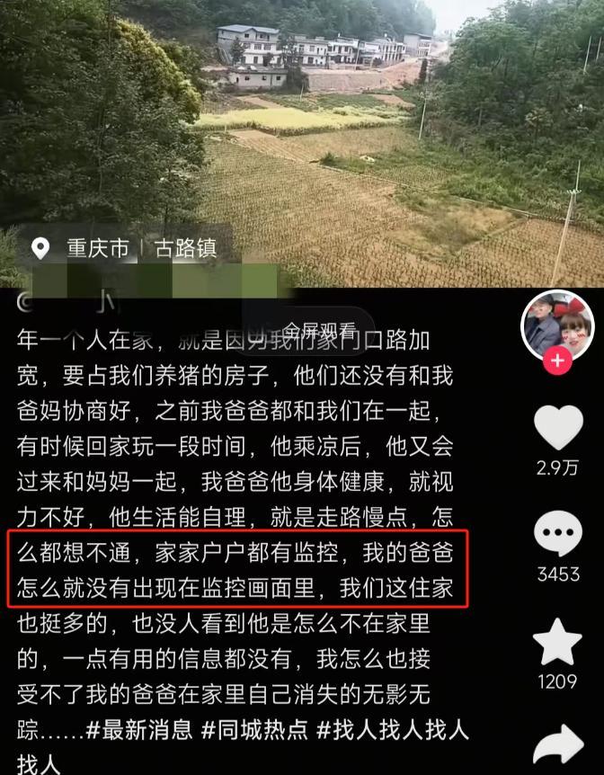 重慶老人失蹤2月,三大疑點未解,女兒哭訴:只剩骨頭也要接回家