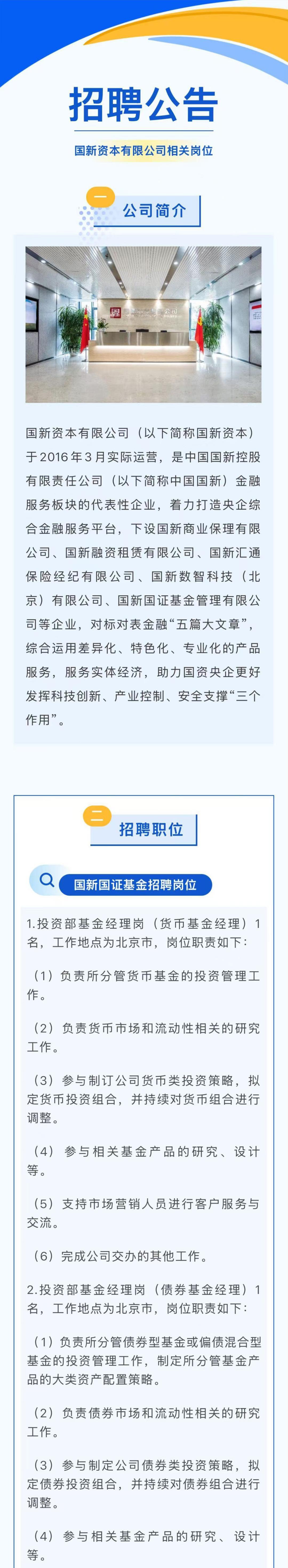 【社招】國新資本有限公司相關崗位招聘公告