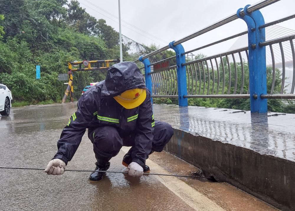 除了兩廣區域,重慶中東部、西北部地區也出現大到暴雨。中國華電萬寶風電場周邊道路發生垮塌,泥沙碎石堆積,損毀嚴重。中國華電重慶區域迅速響應,成立應急小組火速馳援。搶險人員趕赴滑坡現場,踩着溼滑山路、踏着積水,對裸露的光纖進行了臨時加固與保護,用最短時間化解了通信中斷的危機。該公司還全面排查受損路段安全隱患,緊急疏通阻塞排水溝,並搬運大量沙袋構築臨時擋水坡,全力防範次生災害。