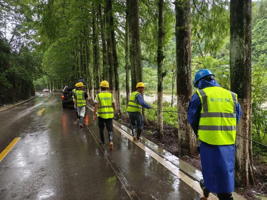 暴雨來襲,通信受阻,中國電信、中國聯通、中國移動等企業通信搶險人員們蹚着雨水,逆行而上。