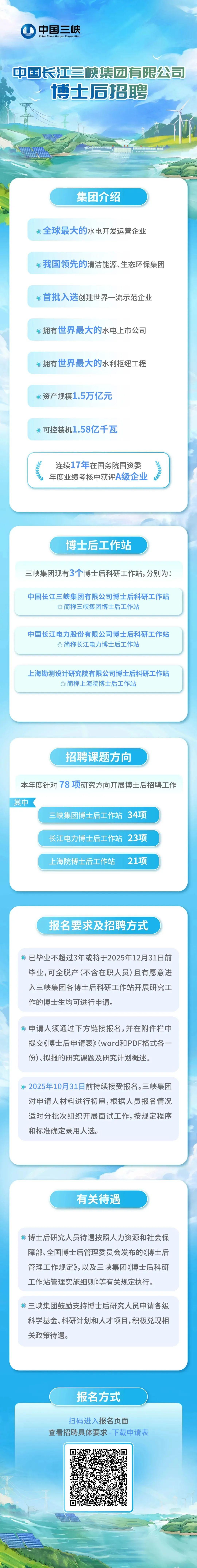 【校招+社招】中國三峽集團啓動2025年博士後招聘