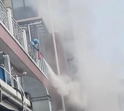 沒多一會,胡家龍又跑到了二樓的樓道,站在窗戶口繼續滅火,“三樓可能是距離比較遠,效果不好,樓上不是有居民住的嘛,我就想着趕緊把火勢控制住。”