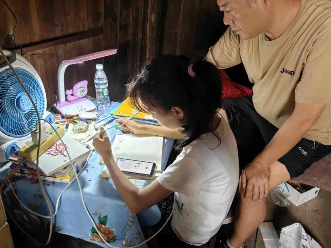 直到夜幕降臨,她才能拿出一臺智能手機,進入在線課堂,開始一天的功課。