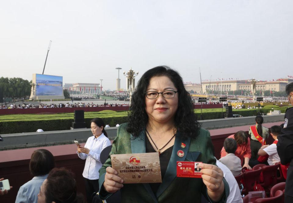 而在觀禮臺上,一個身影格外引人注目,她就是“海空衛士”王偉的妻子阮國琴。