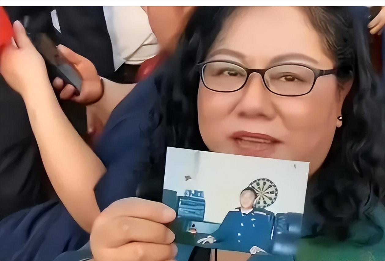 只見她雙手鄭重地捧着王偉的照片,高高舉向藍天,眼神中飽含着思念與深情,她大聲呼喊着:“王偉,你和戰友們又見面了!”